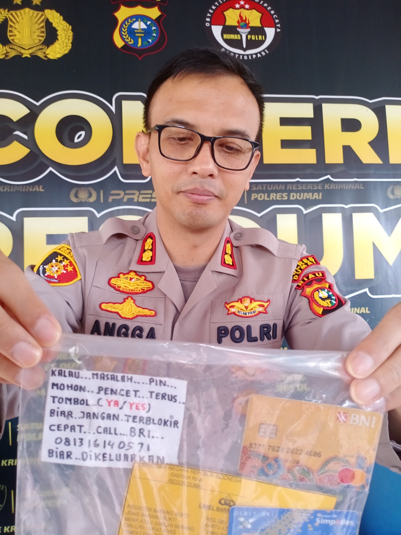 Kapolres Dumai AKBP Angga F Herlambang saat menunjukan tulisan yang ditempel pelaku di sekitar mesin ATM.(F:rio) DUMAI (DUMAIPOSNEWS)- Kapolres Dumai AKBP Angga F Herlambang memberikan pesan khusus […]